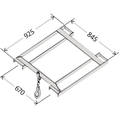 | Produktname | Hebehaken für Hubwagen mit Gabel, Max. Belastung: 3000 kg, Gesamttiefe: 915 mm, Gesamtbreite: 845 mm |