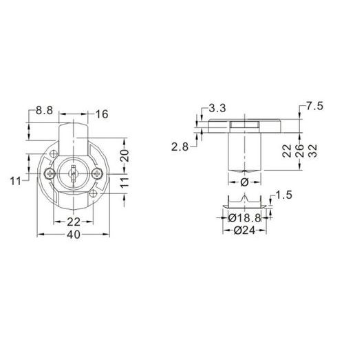 | Produktname | Hebelschloss– gleichschließend, Modell: Hebelschloss, Körperlänge: 42 mm, Max. Türstärke: 20 mm |