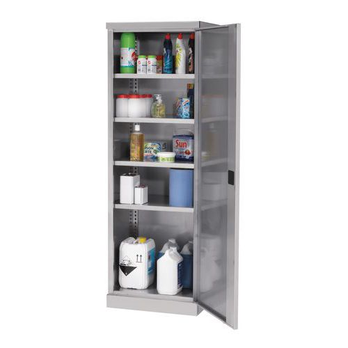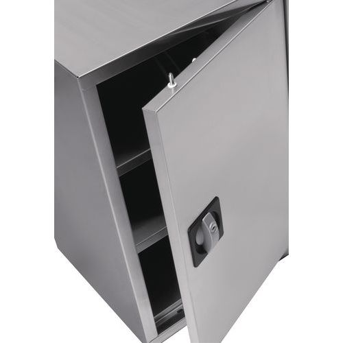 | Produktname | Hochschrank aus Edelstahl, Werkstoff: Stahl, Gesamthöhe: 1800 mm, Gesamtbreite: 600 mm, Gesamttiefe: 500 mm |