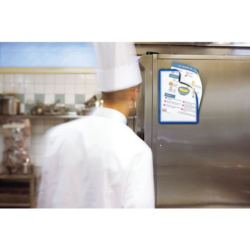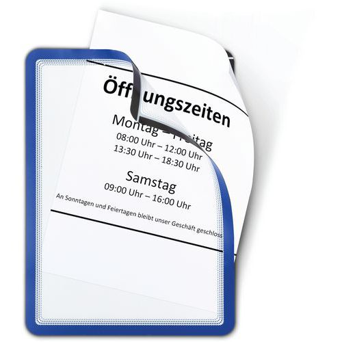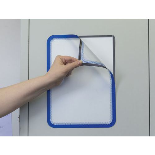 Superficie granulata antiriflesso per una migliore leggibilità. Adatto per comunicazione visiva approccio LEAN, display di sicurezza, KANBAN, 5S, KAIZEN. Scambio rapido dei documenti grazie all'ampia apertura su 3 lati. Design puntinato unico ed esclusivo, con angoli arrotondati che mettono in risalto il documento. Parte posteriore completamente magnetica per una visualizzazione senza attrezzi su tutte le superfici metalliche. Ideale per l'uso in negozi, hotel, ristoranti, fabbriche, scuole o a casa.