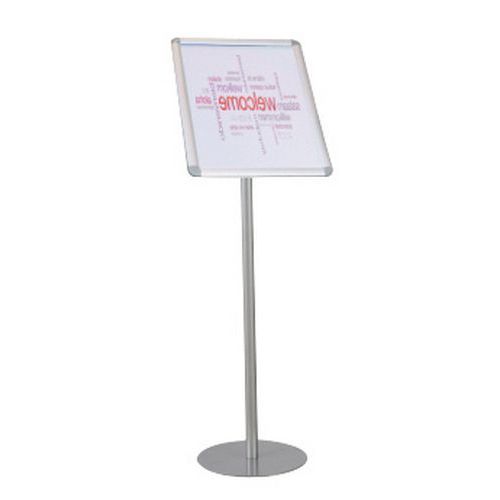 Ständer aus Stahl mit langer Lebensdauer. Bei Bedarf einfach zu wechselnder Rahmen. Hoch- oder Querformat.
