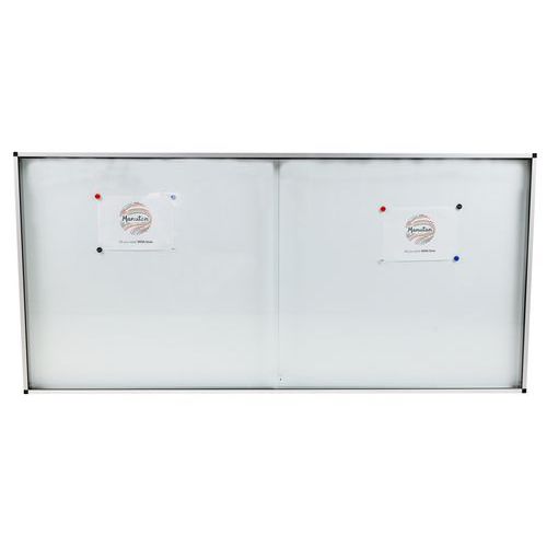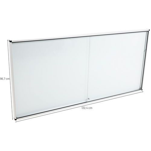 Robuste, sichere und leichte Innenvitrine. Magnetische Oberfläche aus lackiertem Stahl für das Aushängen Ihrer Dokumente mit Magneten. Transparente, abschließbare Schiebetür mit ausgezeichneter Sichtbarkeit der ausgehängten Unterlagen. Glasvitrine, um 5 mm verstärkt für noch mehr Sicherheit Abschließbar, 2 Schlüssel im Lieferumfang enthalten