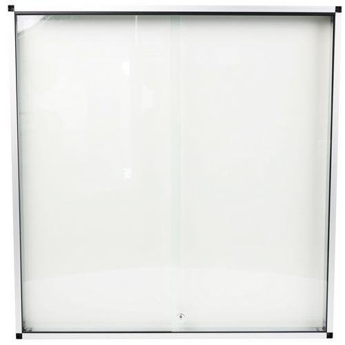 Robuste, sichere und leichte Innenvitrine. Magnetische Oberfläche aus lackiertem Stahl für das Aushängen Ihrer Dokumente mit Magneten. Transparente, abschließbare Schiebetür mit ausgezeichneter Sichtbarkeit der ausgehängten Unterlagen. Glasvitrine, um 5 mm verstärkt für noch mehr Sicherheit Abschließbar, 2 Schlüssel im Lieferumfang enthalten