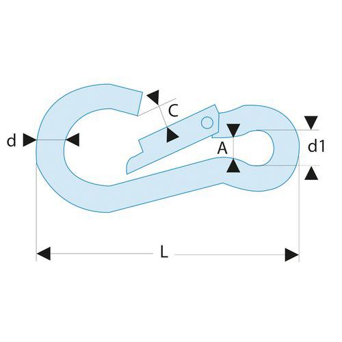 Karabinerhaken aus Edelstahl 316: sehr korrosionsbeständig. Ohne Verriegelungsschraube.