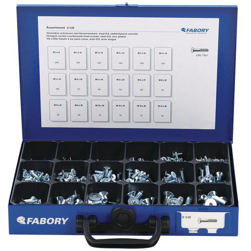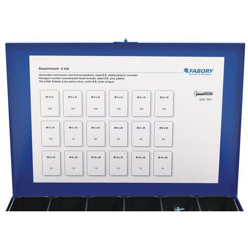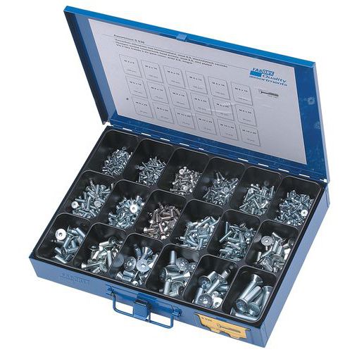 | Produktname | Kasten mit Zylinderschrauben mit Innensechskant, Werkstoff: Stahl, Form des Schraubenkopfes: Gemahlen |