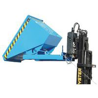 Kompakter Container mit Rollvorrichtung. Stabiler Rahmen mit Staplertaschen. Gegen unabsichtliches Abrutschen und Auskippen gesichert. Der Kippmechanismus kann durch ein Seil in jeder beliebigen Höhe ausgelöst werden.