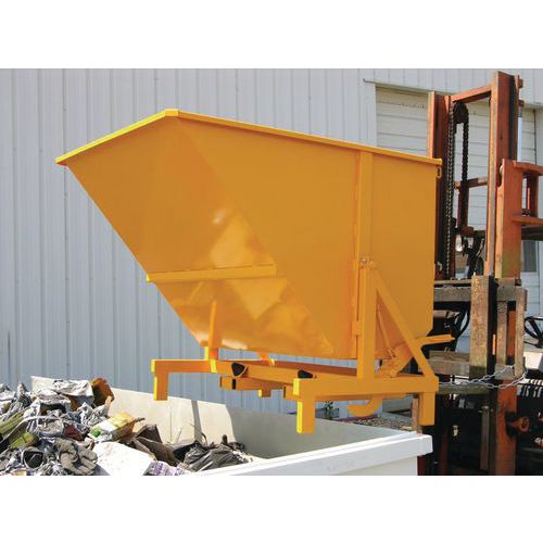 Behälter mit automatischer Kippauslösung durch Kontakt oder manuell mit Hebel.