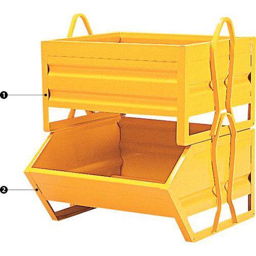 Der Kippbehälter ist stapelbar und mit einer Zugwinde einfach zu befestigen. Mit einem Palettenhubwagen oder Gabelstapler ist der Kippcontainer einfach zu transportieren. Hergestellt in Frankreich Max. Belastung (kg) : 2000 Kundengarantie : 3 Jahre