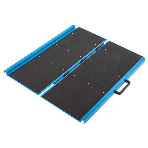 Auffahrrampe für Wagen, Rollstühle etc. Einfach zu verstauen: Die Rampe lässt sich auf halbe Größe zusammenklappen. Mit rutschfester Beschichtung.