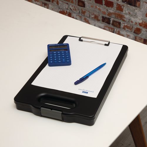 Klemmbrett mit Aufbewahrungsfach aus PP-Kunststoff, A4, Werkstoff: ABS, Farbe: Schwarz