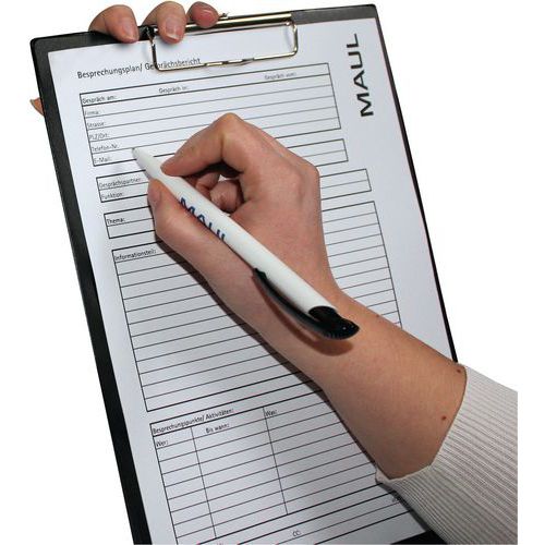 | Produktname | Klemmbrett mit PVC-Filmüberzug, A4, Hochformat, Farbe: Schwarz, Dokumentformat: 210 x 297 mm (A4) |