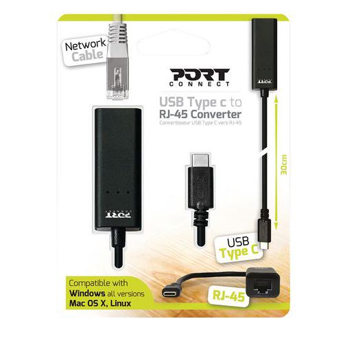 | Produktname | Konverter Typ C zu RJ-45 - PORT Connect, Kabel Länge: 30 cm, Typ Nr.: 900126, Auswahl Telearbeit: ja |
