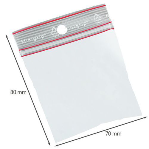 Kunststoffbeutel Minigrip - 100 µ - Standard, Stärke: 100 µm, Werkstoff: Polyethylen, Höhe: 80 mm Kunststoffbeutel Minigrip - 100 µ - Standard, Stärke: 100 µm, Werkstoff: Polyethylen, Höhe: 80 mm