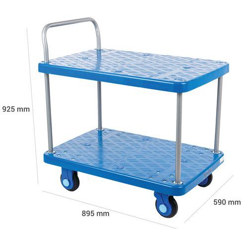 Kunststoffwagen mit 2 Böden, Max. Belastung: 300 kg, Gesamthöhe: 925 mm, Gesamtbreite: 590 mm
