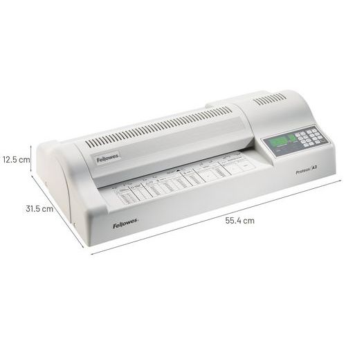 | Produktname | Laminiergerät Fellowes Proteus A3, Dokumentformat: 297 x 420 mm (A3), Laminiergeschwindigkeit: 95 cm/min |