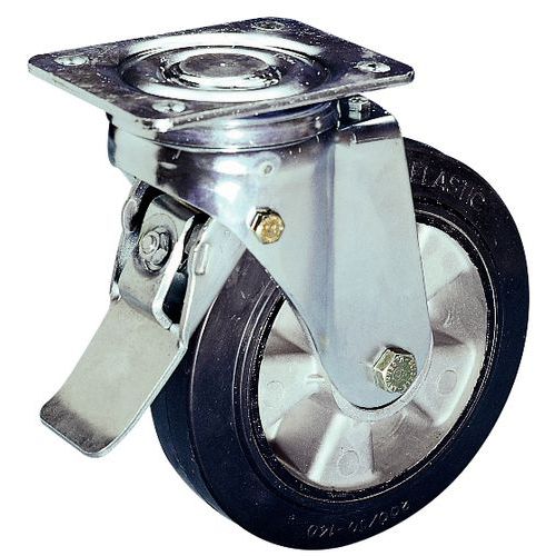 Lenkrolle mit Gabel aus tiefgezogenem Stahlblech für lange Nutzungsdauer. Stoßbeständig und nicht abfärbend dank Alufelge mit Lauffläche aus Vollgummi. Lenksystem mit Doppelkugellager und Kunststoffrunddichtung für lange Nutzung ohne Wartungseingriff. Einfaches Blockieren des Rades und Stoppen der Schwenkfunktion dank Feststeller. Mit verschraubter Achse zum einfachen Austauschen der Rolle. Kundengarantie : 3 Jahre