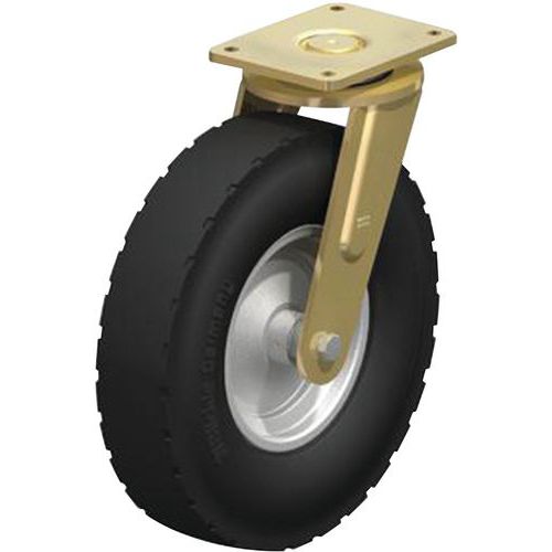 Gabel aus lackiertem Stahl mit Platte, besonders robust und absolut wartungsfrei. Luftreifen, perfekt geeignet für eine Verwendung unter Anhängern. Mit einem Blockprofil ausgestattet für eine hervorragende Haftung. Schwenkfunktion mit Schutz vor Staub und Wasserspritzern durch Anbringung einer Gummidichtung und ausgestattet mit einer Schmiervorrichtung.