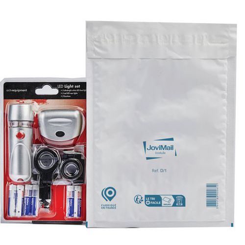 Umschlag Jovimail Ecobulle aus Polyethylen in Weiß, Innenfutter aus Luftpolsterfolie Glatte Folie zum leichten Einfüllen von Objekten und Dokumenten Undurchlässig, reißfest Tasche mit Klebebandverschluss