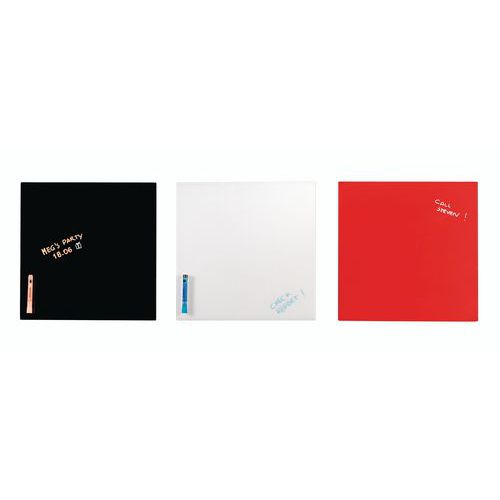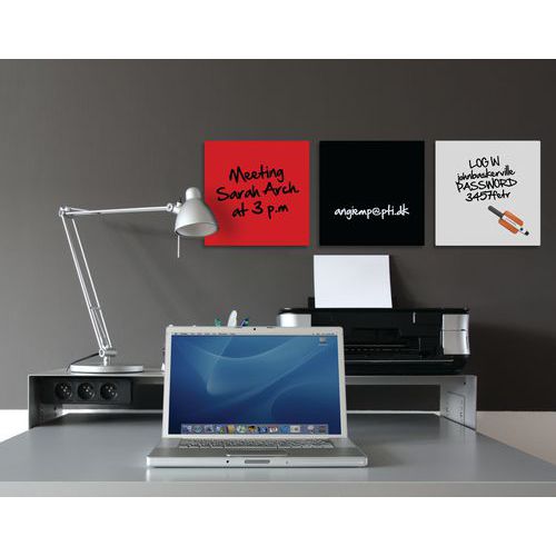 Magnetische Glasoberfläche für ein bequemes Schreiben. Gehärtetes Glas für eine sicherere Handhabung (4 mm Stärke). Vielseitig, da sie mit verschiedenen Markern beschriftet werden kann. Verfügbare Farben: Weiß, Rot und Schwarz. Magnetisch