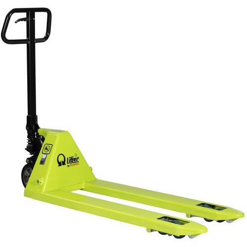 | Produktname | Manueller Hubwagen, geräuscharm - Tragkraft 2000 kg, Max. Belastung: 2000 kg, Länge Gabel: 1150 mm |