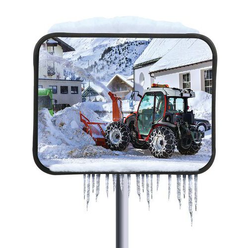 Mehrzweckspiegel zur Überwachung im Innen- und Außenbereich mit Vereisungsschutz. Der Spiegel gibt die Wärme wieder ab, die tagsüber gespeichert wurde. So wird der Bildung von Beschlag und Frost entgegengewirkt. Vandalismussicher und unveränderlich. Überwachung in 2 Richtungen mit einem Sichtbereich von 90°. Befestigung auf Trägermaterial aller Art mit 60 bis 90 mm Querschnitt oder direkt an der Wand. Hergestellt in Frankreich Kundengarantie : 10 Jahre