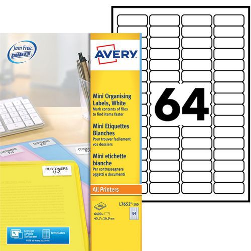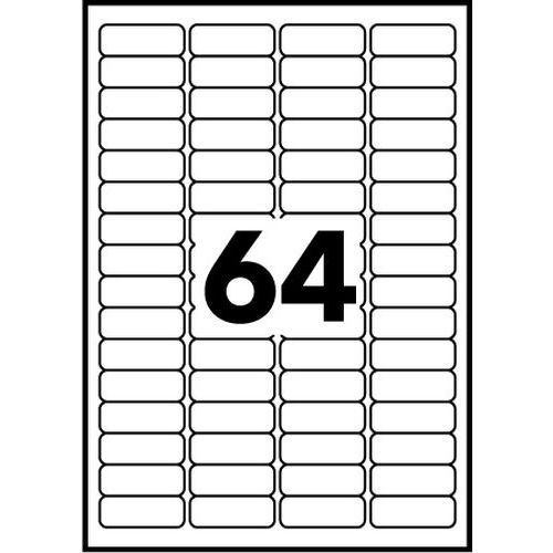 Mini-Etiketten - Für Laserdruck, Anzahl Etiketten/Blatt: 64, Anzahl Etiketten: 6400, Etikett Länge: 45.7 mm Mini-Etiketten - Für Laserdruck, Anzahl Etiketten/Blatt: 64, Anzahl Etiketten: 6400, Etikett Länge: 45.7 mm