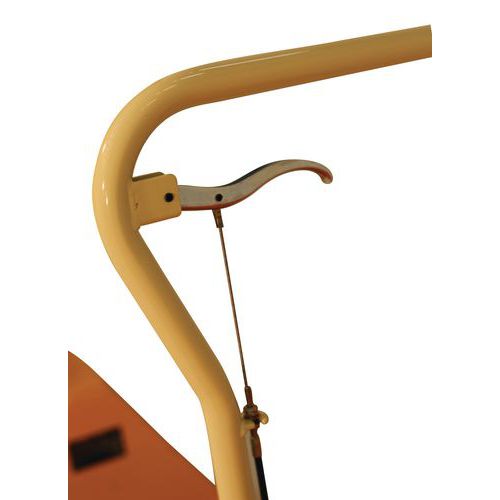 Handlicher Hubtisch mit Rollen mit geringem Anlaufwiderstand. Hochwertige Hydraulikpumpe mit verchromtem Kolben. Präzises Leerlaufventil mit konstanter Senkgeschwindigkeit. Niedrige Bauhöhe. Wagen und Schere aus geschweißtem Profilstahl, strapazierfähig und wartungsfrei. Robuster Schiebebügel.