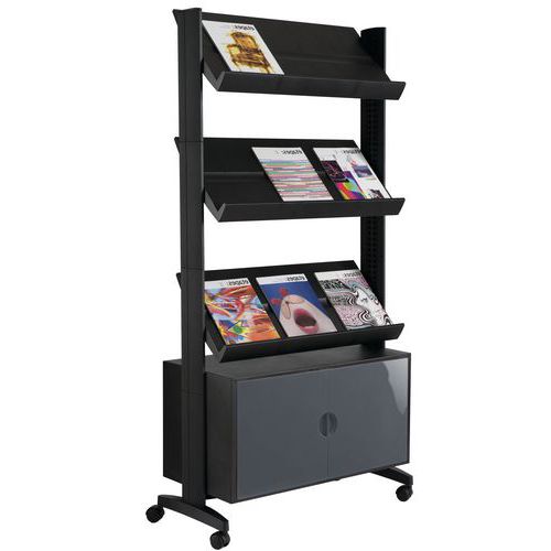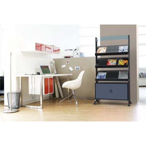 | Produktname | Mobiler Prospekthalter für Broschüren, 3 Fachböden mit Container - EasyDisplays, Anzahl Fächer/Abteil: 3 |
