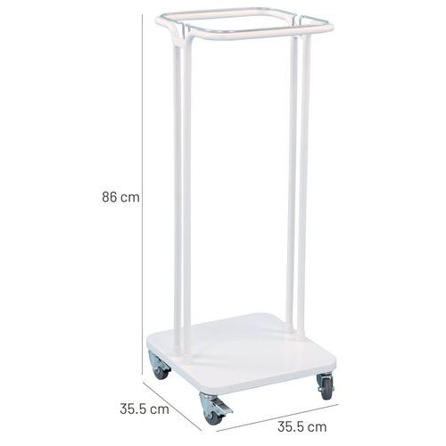 Mobiler Müllbeutelhalter mit geräuscharmem Verschluss des Deckels. Entwickelt für Krankenhäuser, Großküchen, Büros usw. Sehr stabiler Metallrahmen, ausgestattet mit nicht abfärbenden, leisen Rädern mit Kugellagern (2 Räder mit Feststeller). Ausgestattet mit einer cleveren Beutelbefestigung, für perfektes Einsetzen und einfaches Entfernen. Glatte Oberfläche für eine schnelle Reinigung. Mehrere zusammengesetzte Einheiten mit farblich unterschiedlichen Beuteln können eine sehr übersichtliche Mülltrennstation bilden.