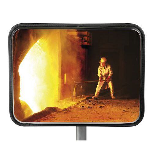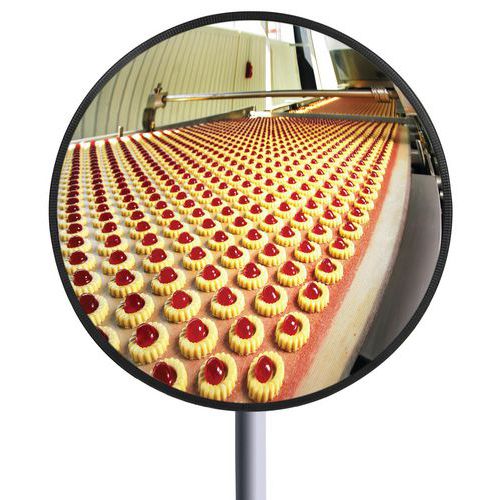 Multifunktions-Sicherheitsspiegel komplett aus Edelstahl. Für Kontrolle, Überwachung und Sicherheit im Außen- und Innenbereich. Kontrolle von Transportbändern und von verborgenen Maschinenteilen. Polierter Edelstahl, vandalismusgeschützt, besonders beständig in Küstengebieten und im Hochgebirge. Geeignet für Garagen- und Gebäudeausfahrten, für die Kontrolle an Parkplatzhäuschen und Mautstationen. Hergestellt in Frankreich Kundengarantie : 10 Jahre