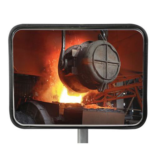 Multifunktions-Sicherheitsspiegel komplett aus Edelstahl. Für Kontrolle, Überwachung und Sicherheit im Außen- und Innenbereich. Kontrolle von Transportbändern und von verborgenen Maschinenteilen. Polierter Edelstahl, vandalismusgeschützt, besonders beständig in Küstengebieten und im Hochgebirge. Geeignet für Garagen- und Gebäudeausfahrten, für die Kontrolle an Parkplatzhäuschen und Mautstationen. Hergestellt in Frankreich Kundengarantie : 10 Jahre