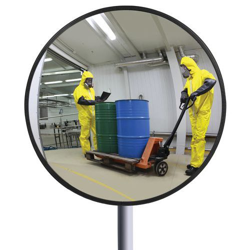 Multifunktions-Sicherheitsspiegel komplett aus Edelstahl. Für Kontrolle, Überwachung und Sicherheit im Außen- und Innenbereich. Kontrolle von Transportbändern und von verborgenen Maschinenteilen. Polierter Edelstahl, vandalismusgeschützt, besonders beständig in Küstengebieten und im Hochgebirge. Geeignet für Garagen- und Gebäudeausfahrten, für die Kontrolle an Parkplatzhäuschen und Mautstationen. Hergestellt in Frankreich Kundengarantie : 10 Jahre