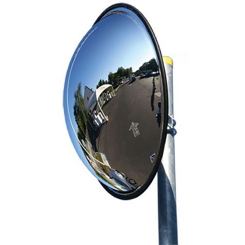 Bruchsicherer, unveränderlicher, UV-beständiger Sicherheitsspiegel. Geeignet für Garagentore, Hauseingänge, Privatwege usw. 180°-Überwachung, in 3 Richtungen. Befestigung auf Pfosten mit 60 bis 90 mm Querschnitt oder an der Wand.