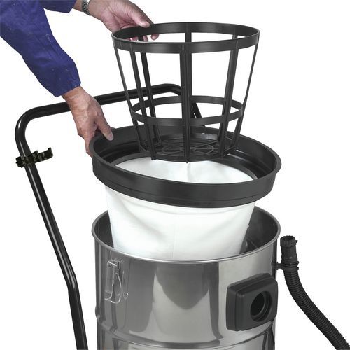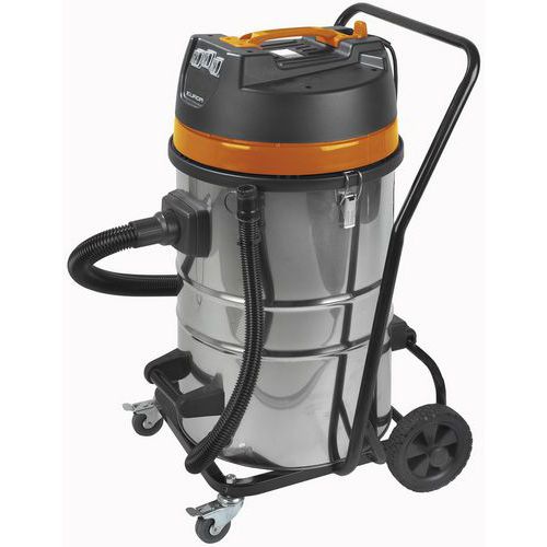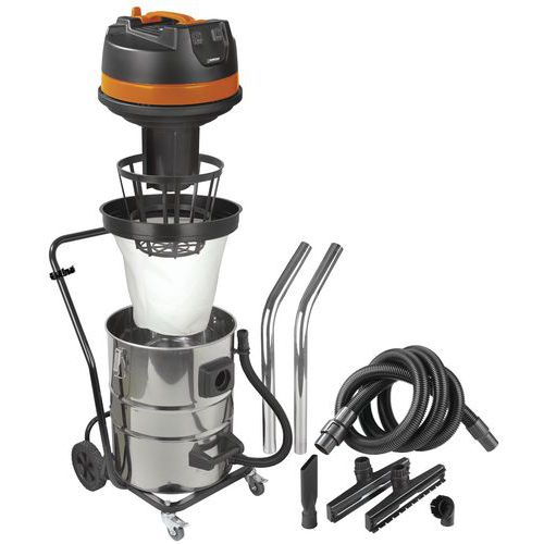 Saugt Wasser und Staub, einfach zu bewegen dank der 4 Räder. Saugt ebenso mühelos trockenen Schmutz wie flüssige Stoffe auf. Mit einem Filter zum Schutz des Eindringens von Staub in den Motor ausgestattet. Verfügt über einen Schwimmer, der ein Überlaufen durch das Ansaugen von zu viel Flüssigkeit verhindert. Lässt sich einfach durch Kippen des Edelstahlinnenbehälters entleeren. Praktische und einfache Verwendung. Dispone di un set completo di accessori che ne facilitano l'utilizzo.