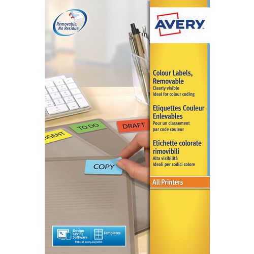 Neu positionierbare farbige Etiketten Avery - Bedruckbar mit Laser- und Tintenstrahldruckern sowie Kopierern