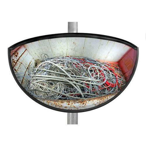 Überwachungsspiegel, Halbkugel mit einer 180°-Panorama-Sicht in 3 Richtungen. Ideal für Kontrolle und Überwachung von Parkplatzausfahrten. Maschinenführer können nach hinten und in den toten Winkel sehen. Reflektor aus Plexiglas, sehr robust, beständig und formstabil. Hergestellt in Frankreich Kundengarantie : 3 Jahre