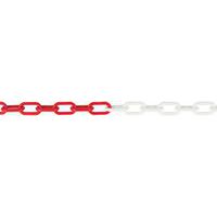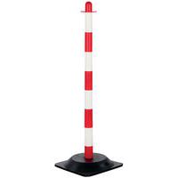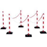 Pfosten aus Polyethylen mit Befestigungsösen zum einfachen Aufhängen der mitgelieferten Kette 10 m lange Kette Gute Sichtbarkeit dank zweifarbiger Optik Sehr einfache modulare Installation Schwarze Bodenplatte Rot-weiße Pfosten