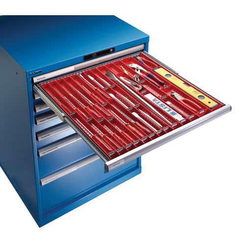| Produktname | Plastikbecherset für Schubladen LISTA – Breite 102 cm, Typ Facheinteilung: 24 Becher / 40 Trennelemente |