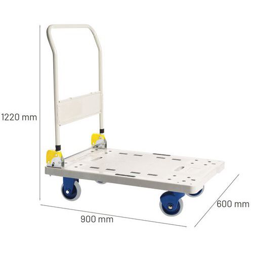 | Produktname | Plattformwagen aus Kunststoff mit klappbarem Schiebebügel, Max. Belastung: 300 kg, Gesamthöhe: 1220 mm |