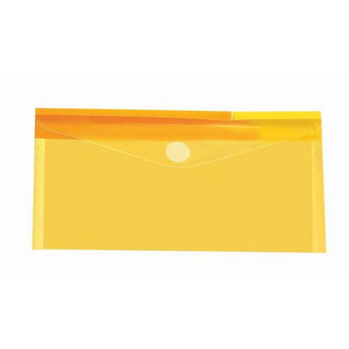 Praktische Mappe im DIN A4-Format mit Siebdruck-Design zur geschützten, geordneten Aufbewahrung oder Präsentation Ihrer Dokumente. Verschluss mittels klettverschluss® -Knopf für perfekten Halt. Aus starrem Polypropylen, glatt und glänzend. In topaktuellen, durchscheinenden Pastellfarben: blau, violett, grün, gelb, rosa, farblos.