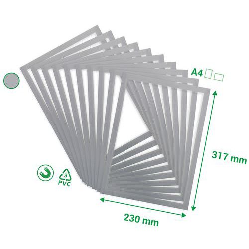 Telaio in PVC. Spesse strisce magnetiche tutt'intorno. Angoli quadrati adatti per l'esposizione su lavagne magnetiche.