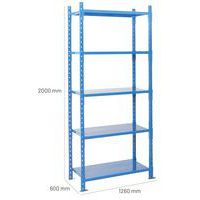 Sehr stabiles Regal mit einer hohen Tragkraft von bis zu 2,5 t. Einfach erweiterbar durch das Hinzufügen von einem oder mehreren Anbauelementen. Mit geschlossenen Fachböden, um das Herunterfallen von Gegenständen zu verhindern. Schweres Regal, einfach zu montieren und zu erweitern.