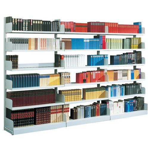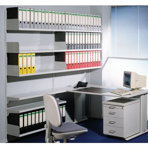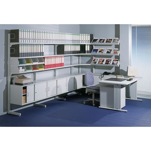 Büroregal mit einfachem oder doppeltem Zugang. Robustes Material und stabile Konstruktion. Einzigartiges und zuverlässiges Einhaksystem. Hochwertige Verarbeitung mit widerstandsfähiger Beschichtung gegen Kratzer. Einfach aufzubauendes und erweiterbares Ausstellungsregal.