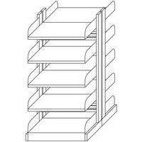 Inhalt: Einseitig: 1 oder 2 offene Ständerrahmen (Grundelement 2, Anbauelement 1), - 5, 6 oder 7 geschlossene Fachböden aus Blech (je nach Höhe) Doppelseitig: 2 oder 4 offene Ständerrahmen (Grundelement 4, Anbauelement 2), - 5, 6 oder 7 geschlossene Fachböden aus Blech (je nach Höhe)