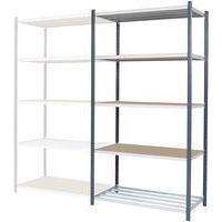 - Set bestehend aus 1 Eckregal (1800 x 900 x 450 mm) und 1 Regal für leichte Lasten Rapid 3 Evolution (1800 x 1500 x 450 mm) Industrieregale zur Lagerung leichter bis mittelschwerer Lasten, mit einer maximalen Tragkraft von 250 kg/Ebene Robust dank Befestigung der Streben mit Doppelnietung und zwei Verstärkungen pro Ebene unter den Böden Hochwertige Epoxidbeschichtung
