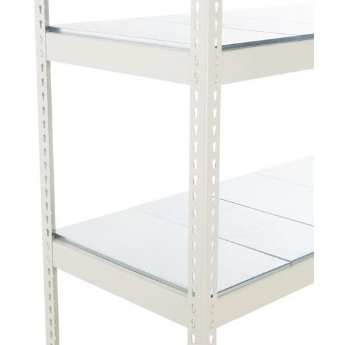 Schlichtes und extrem robustes Industrieregal zur Aufbewahrung schwerer Waren. Geschlossener Fachboden aus Stahl: perfekt für die Lagerung loser und/oder fettiger Produkte geeignet. Verzinkt für feuchte Umgebungen oder mit grauer/blauer Epoxid-Beschichtung für trockene Umgebungen. Lagerregal für einfache Montage, keine Hilfe durch Techniker oder spezifisches Werkzeug nötig.