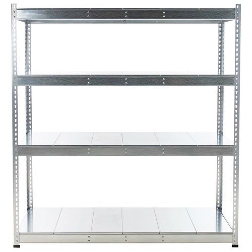 Schlichtes und extrem robustes Industrieregal zur Aufbewahrung schwerer Waren. Geschlossener Fachboden aus Stahl: perfekt für die Lagerung loser und/oder fettiger Produkte geeignet. Verzinkt für feuchte Umgebungen oder mit grauer/blauer Epoxid-Beschichtung für trockene Umgebungen. Lagerregal für einfache Montage, keine Hilfe durch Techniker oder spezifisches Werkzeug nötig.