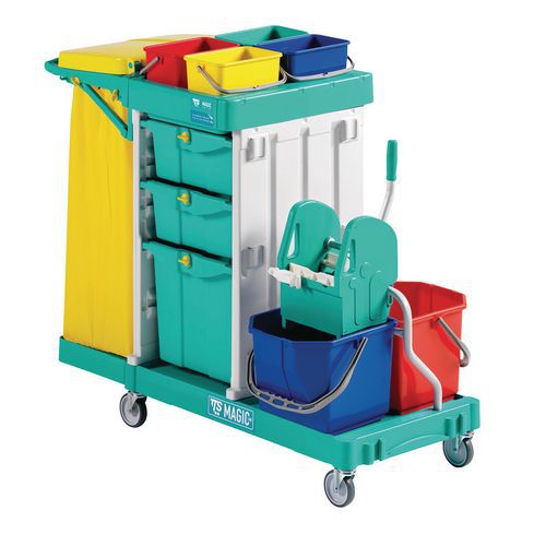 | Produktname | Reinigungswagen Magic-Line 350, Gesamtinhalt: 30 L, Farbe: Grün, Höhe: 112 cm, Breite: 65 cm, Länge: 135 cm |