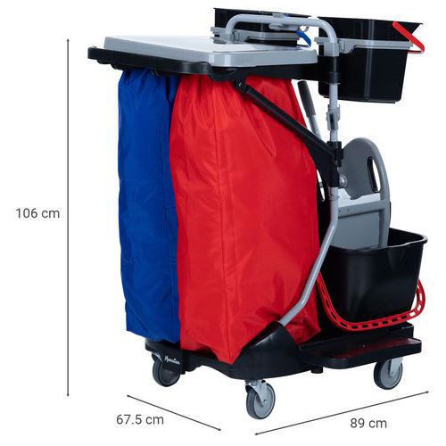 | Produktname | Reinigungswagen mit zwei 4-L-Eimern, Presse und kunststoffbeschichtetem Sack - Manutan Expert |