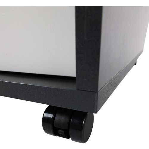 Maniglia realizzata in profilo di alluminio anodizzato. Carico massimo per ogni cassetto di 25kg. Ruote piroettanti diametro 37 mm.